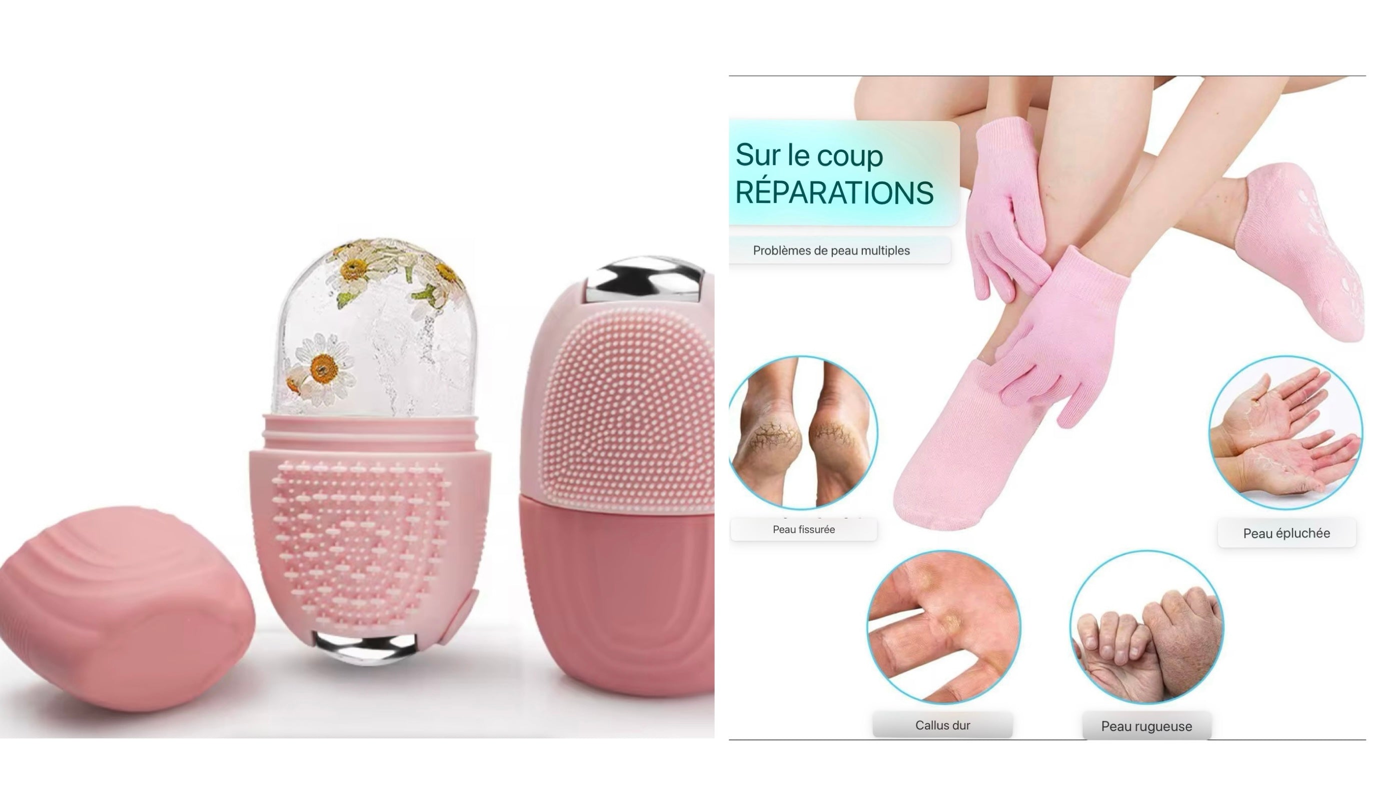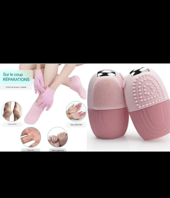 Kit de soins (facial ice roller+gants et chaussettes hydratants gel de silicone )